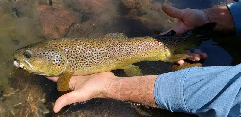 In midsummer, the river comes alive with the famous Dragonfly Hatch. This is the perfect time to throw large, foamy terrestrials such as Fat Alberts, Chernobyl Ants, or realistic dragonfly imitations. Throughout the season, we adjust our gear and techniques to maximize the fishing experience.
